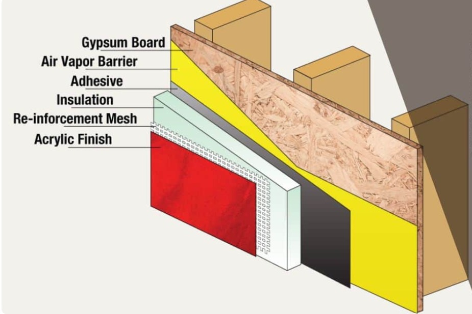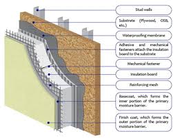 - در سیستم های نما و عایق خارجی ( EIFS ) به عنوان لایه تقویتی بین عایق و پوشش نما.